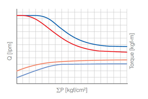| Model | Displacement (cm²/rev) | Rated Pressure (kgf/cm²) | Flow (l/min) | Max speed ofr self priming (rpm) | Max input torque (kgf-m) | Application (Ton) | |||