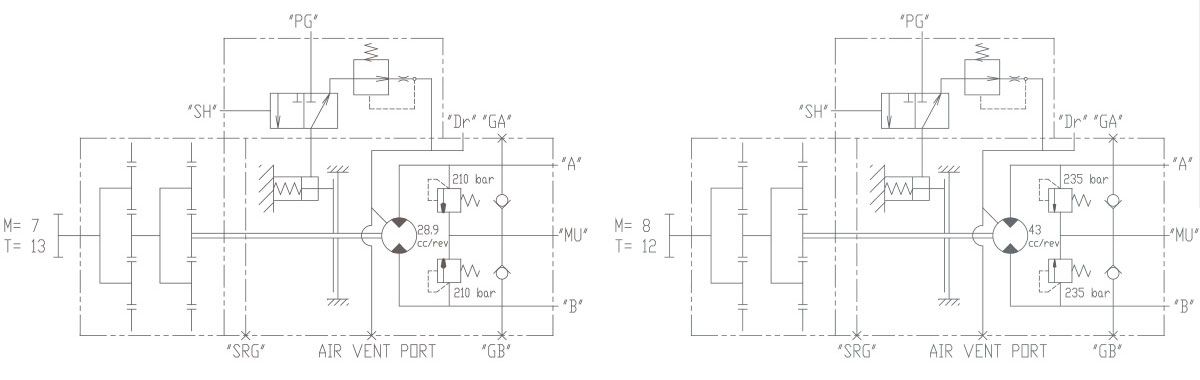 | Model | REDUCTION GEAR RATIO | GEAR SPEC | Displacement (cc/rev) | Max. output torque (kgf.m[kN.m]) | Relief Valve (kgf/cm²[Mpa]) | |