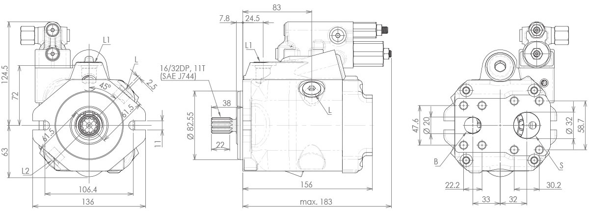 | A10VNO28 | 28cm³ | 42 HP | 3200 RPM | 90 l/min | 94 NM | 15 kg |