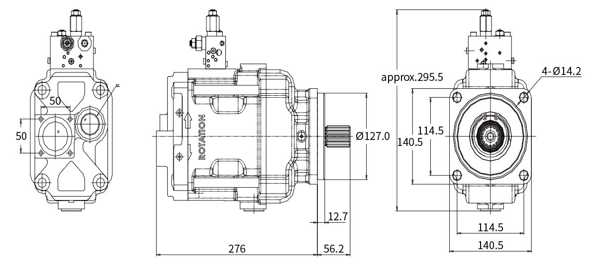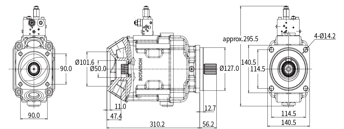 | 350 bar | 110 cc/rev | 2200 rpm | 500 rpm | 85% or more | 640 Nm | 34 kg(Thru Shaft) |